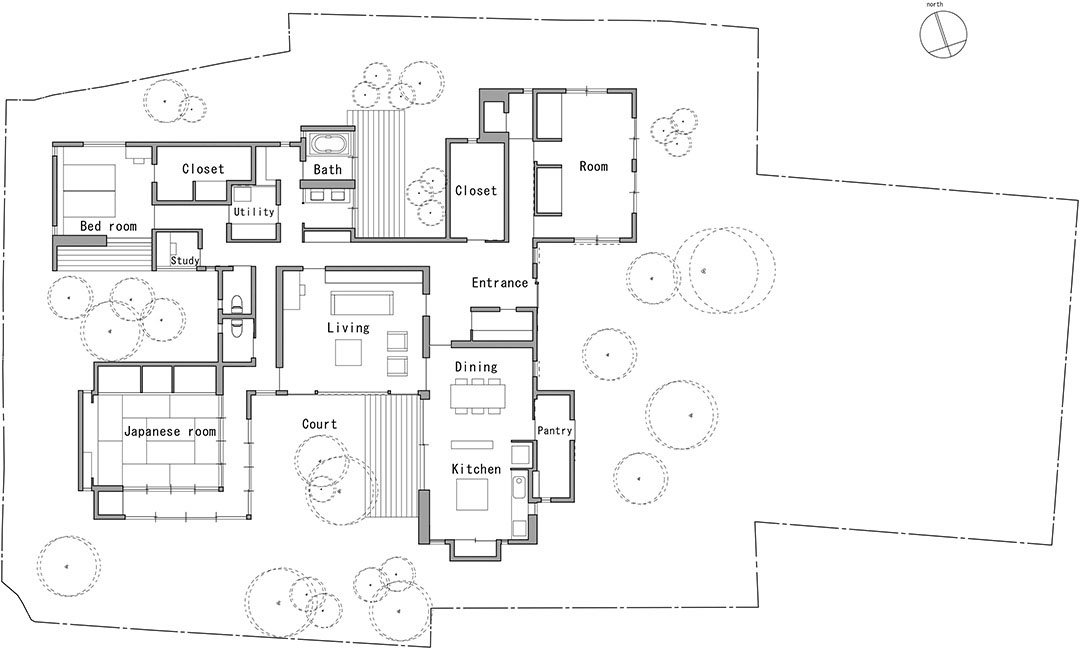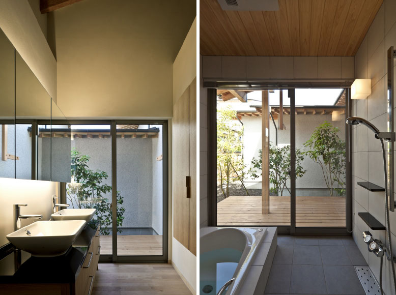 Architect Takashi Okuno designed this sprawling home named House of Nagahama in Ehime Prefecture, Japan with emphasis on privacy and tranquility. The plan has five separate gardens and terraces which are accessed via different rooms.