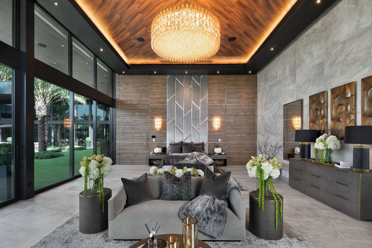 Modern Luxury Villa Interior Luxury Modern Home Bar Chic Modern Villa Bedroom Suite Oversized Walk-In Closet Room Indoor Pool with Salt Sauna and Steam Room Quiet Vista Circle Stone Creek Ranch