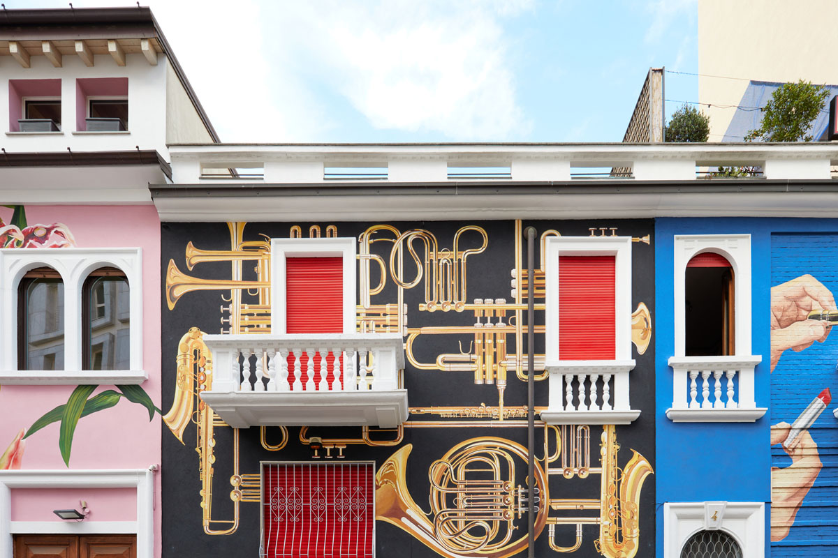 Casa Toiletpaper, as it is called, in the Città Studi district opened in via Balzaretti. Passers-by can dive into the irreverent imagination of the brand on the mural designs, which are perfectly inserted between balconies and windows.