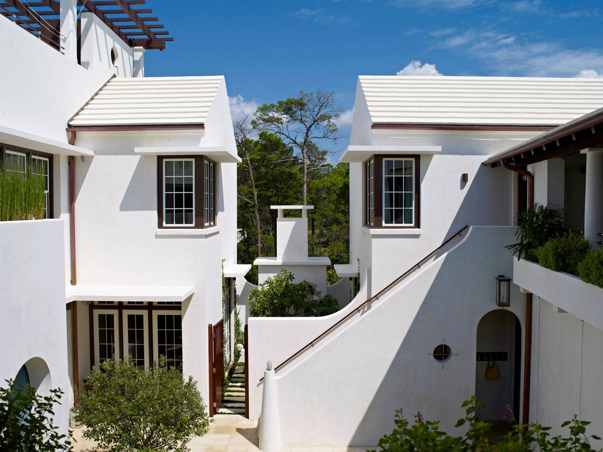 This quiet haven in Alys Beach, Florida offers a private courtyard with a pool. The home is located in the New Urbanist community designed by the world-renowned Duany Plater-Zyberk & Company.