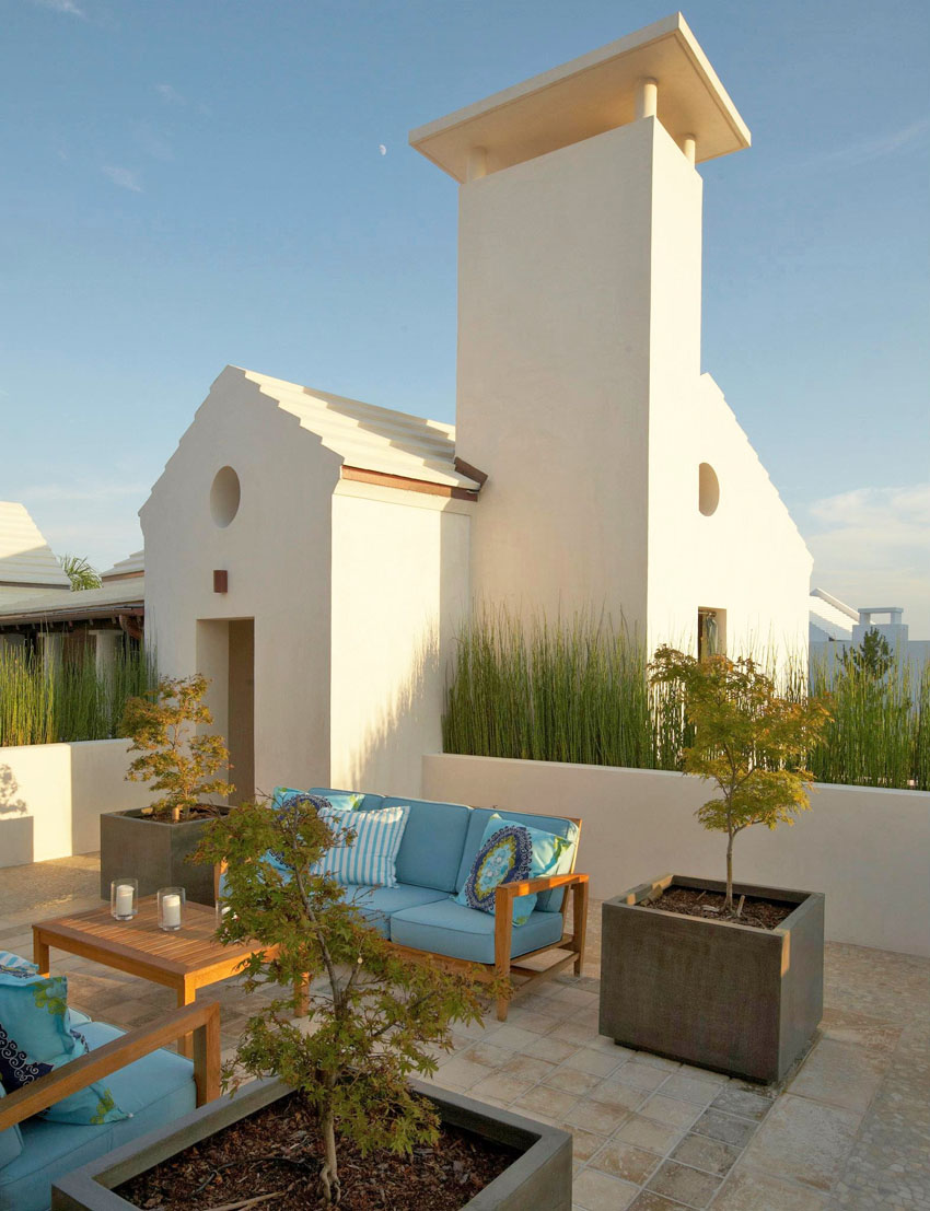 Gary Justiss Architect and builder Artisan of Seagrove collaborated on the project to build this unique house with a calming courtyard as its central focal point.